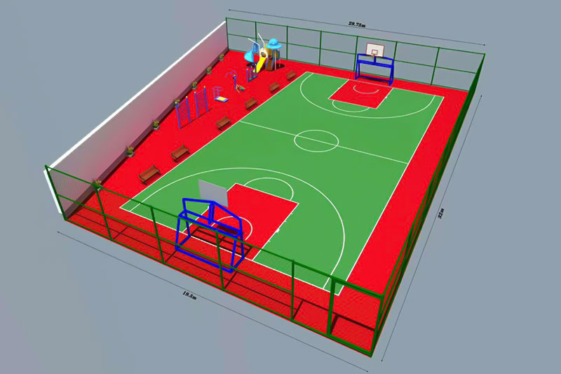 標準籃球場(28m×15m)不適合所有年齡段。兒童(12歲以下)可用22m×12m場地,籃筐降至2.6-2.75米;青少年(12-18歲)隨年齡增長逐步過渡至接近標準尺寸,如26m×14米配2.9米籃筐,以適應其身體發育,提升運動體驗與安全性。