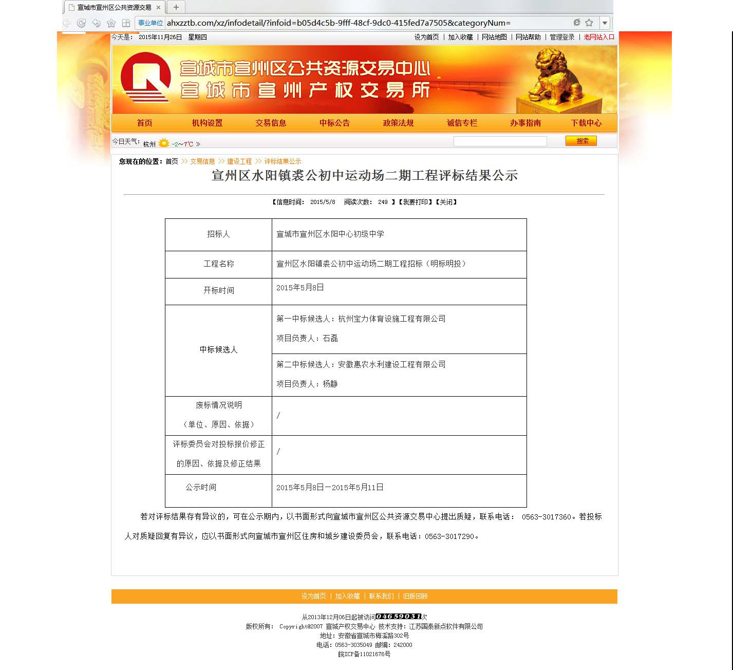 杭州寶力體育中標宣州水陽鎮裘公初中運動場二期工程