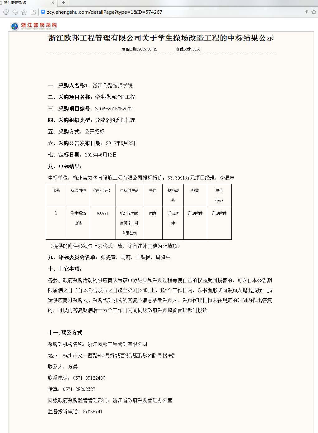 杭州寶力體育中標浙江公路技師學院學生操場改造工程