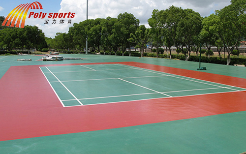 羽毛球場地改造EPDM顆粒型由高強度、高彈性、強抗紫外線的EPDM顆粒加一定比例的單組份膠水,在混凝土或瀝青基礎上直接攤鋪、壓實而成。具有長時間的使用壽命,彈性程度及動力學設計特征。底層由聚氨酯黏合劑按控制比例混合特殊膠粒后,經由專業施工機械控制厚度鋪設。是PU球場的替代產品,具有施工方便,對基礎適應能力強,不容易起皮、起泡等優點。